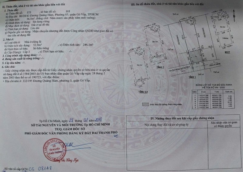 Nhà MT 122 Huỳnh Khương An, Phường 5, Gò Vấp, MT 10m, 8,1x25m, Cn 181,2 m2, trệt 3 lầu, ST, 6PN, 3WC, 24,5 tỷ TL