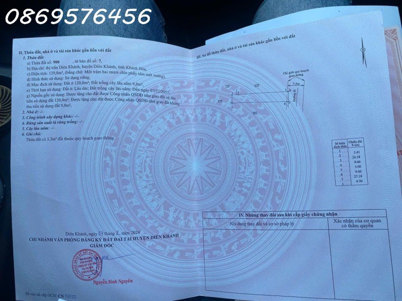 Diện tích công nhận: 129m2