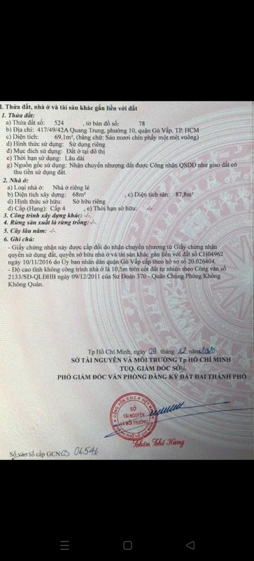 Nhà MT Quang Trung P10 GV, Dt: 3,9*16m NH 5m Cn 57,3m2, Ht: 1 trệt 2 lầu Giá 13Tỷ