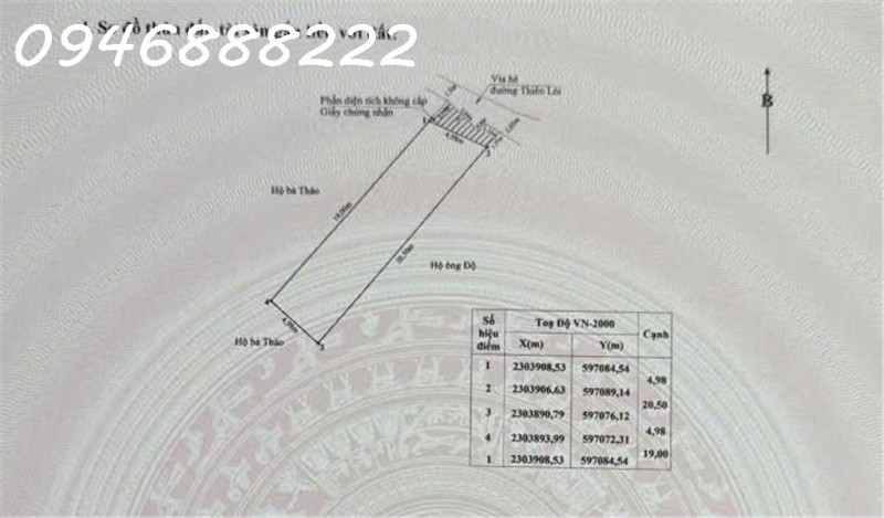 Diện tích công nhận: 50m2
