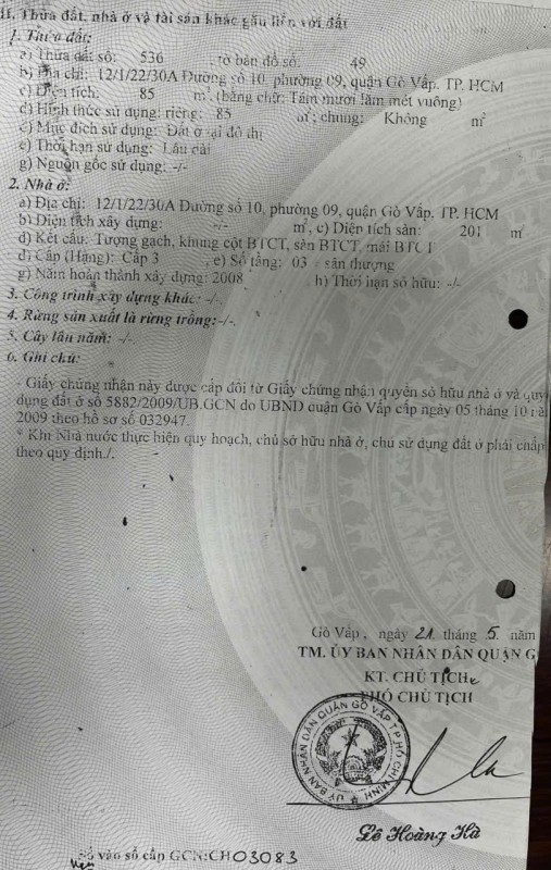 Khu vực: Nguyễn Văn Khối, Phường 9, Quận Gò Vấp, TP Hồ Chí Minh