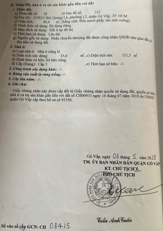 Khu vực: Bùi Quang Là, Phường 12, Quận Gò Vấp, TP Hồ Chí Minh
