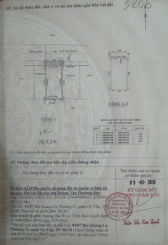 Nhà hẻm 84/87 Bùi Quang Là, Phường 12, Gò Vấp, Hẻm 4m, 4x9,2m, Cn 33 m2, trệt 2 lầu, 4PN, 3WC, 5,38 tỷ TL