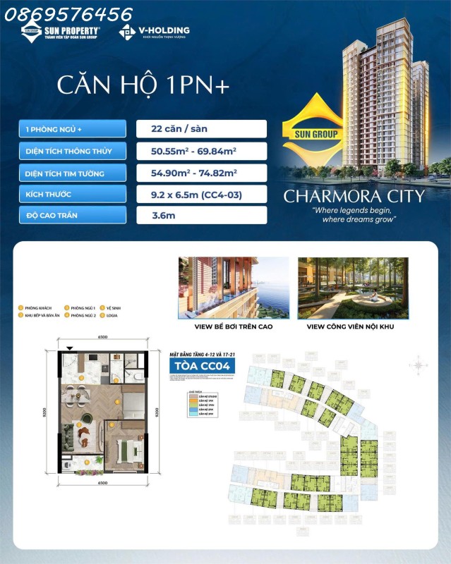 DT: đa đạng, gồm Studio, Căn 1 PN, 1PN+, 2PN, 3 PN.