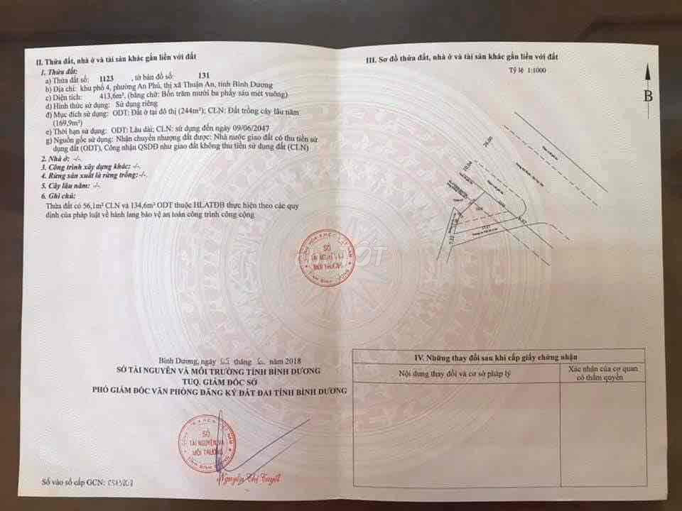 - Diện tích : 413 m2 ( 244m thổ cư )