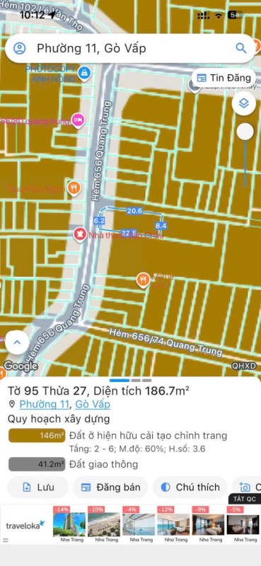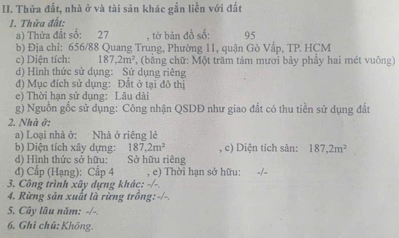 Đất 2 MT hẻm 656/88 Quang Trung, Phường 11, Gò Vấp, Hẻm 6m thông, 7,6x23m, Cn 187,2 m2, 19 tỷ Chốt