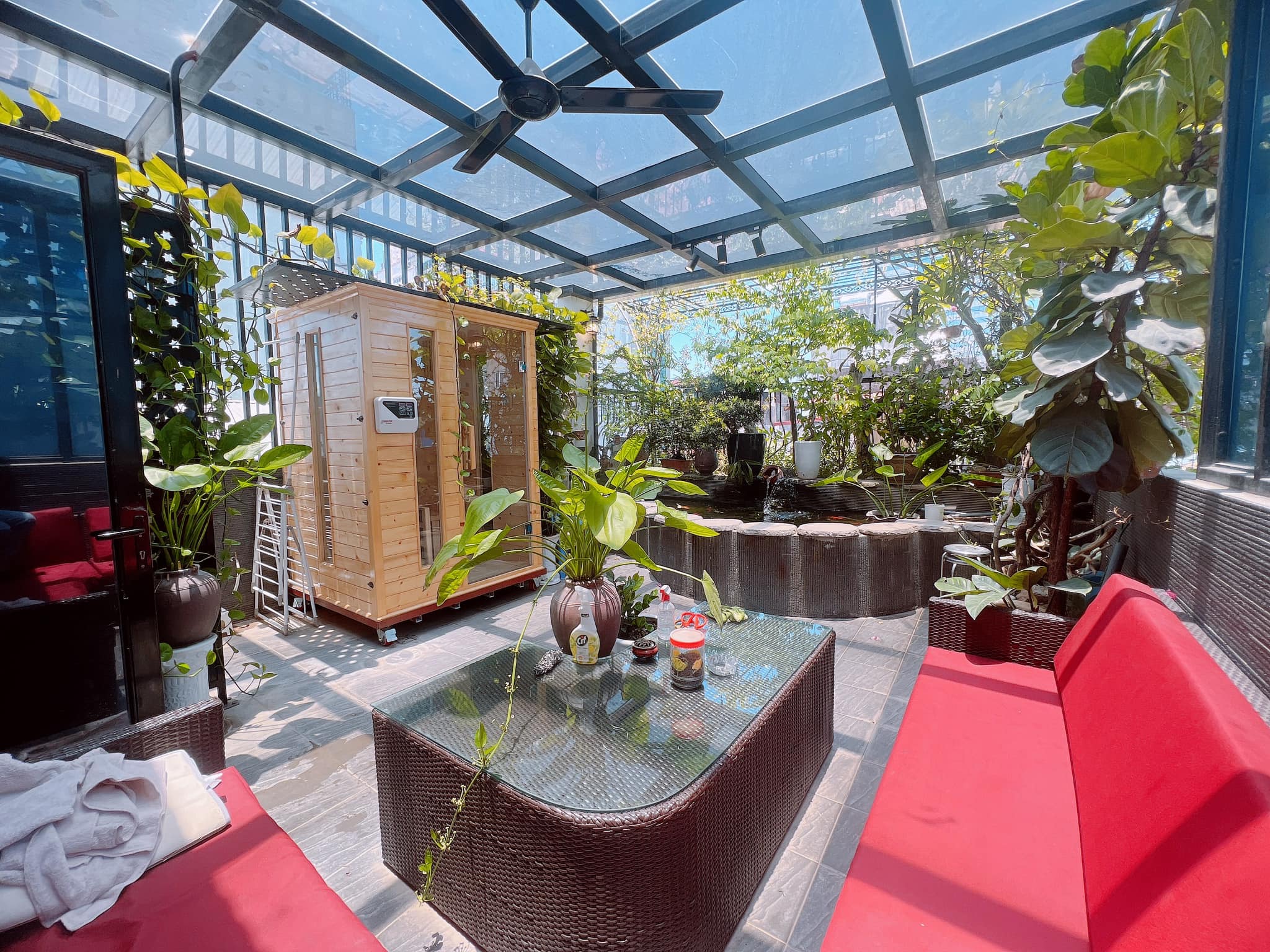 - Tầng 5: Khu thờ + Khu thượng uyển Cafe, Bể cá Coi.