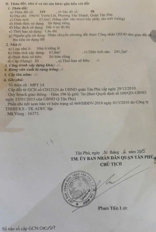 Khu vực: Vườn Lài, Tân Thành, Quận Tân Phú, TP Hồ Chí Minh