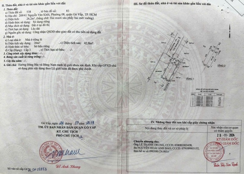 Nhà MT 339 Nguyễn Văn Khối, Phường 8, Gò Vấp, MT 20m, 4,6x21m, Cn 95,4 m2, Cấp 4, 16,8 tỷ TL