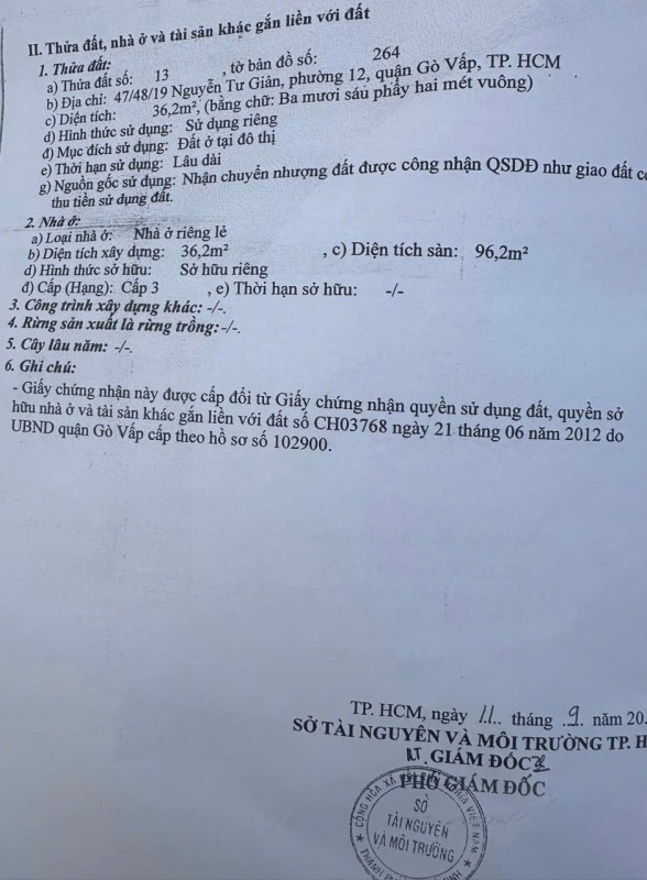 Khu vực: Nguyễn Tư Giản, Phường 12, Quận Gò Vấp, TP Hồ Chí Minh