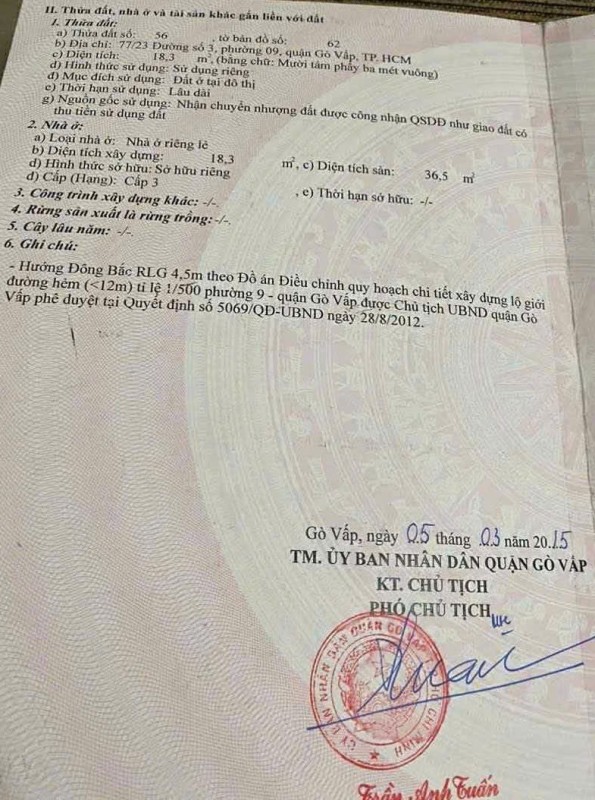 Nhà hẻm 77/23 Đường số 3, Phường 9, Gò Vấp, Hẻm 3m, 4,45x5,5m, trệt 1 lầu, 2PN, 2WC, 3,6 tỷ TL Lộc