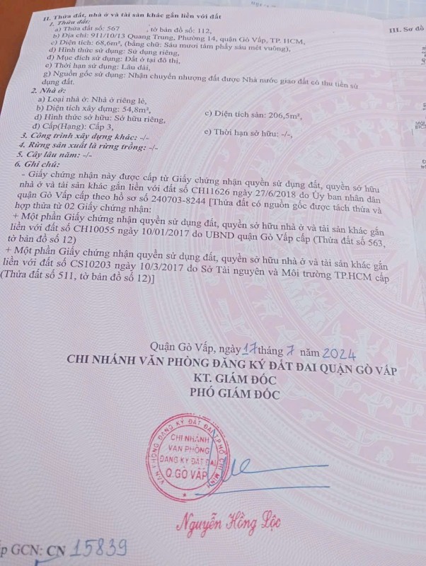 Nhà hẻm 911/10/13 Quang Trung, Phường 14, Gò Vấp, Hẻm 3,5m, 3,6x20m, Cn 68,6 m2, trệt lửng 2 lầu, ST, 5PN, 5WC, Full nội thất, 7,9 tỷ TL
