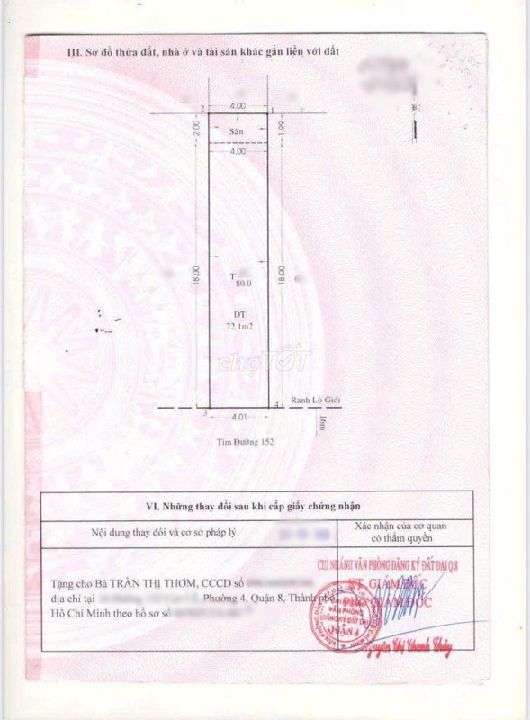 + Diện tích: 4 x 20m, sổ vuông A4