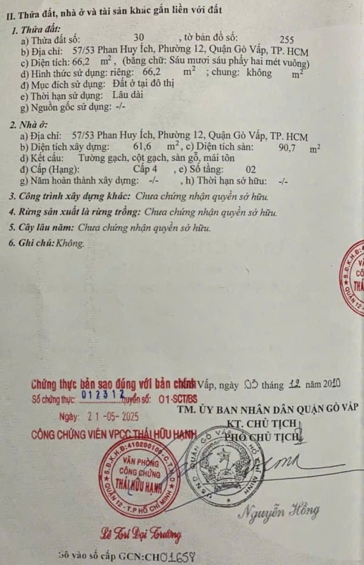 Nhà MT 140 Bùi Quang Là, Phường 12, Gò Vấp, MT 10m, 3,3 NH 3,95x15m, Cn 66,2 m2, trệt 2 lầu, 2PN, 3WC, 6,05 tỷ TL