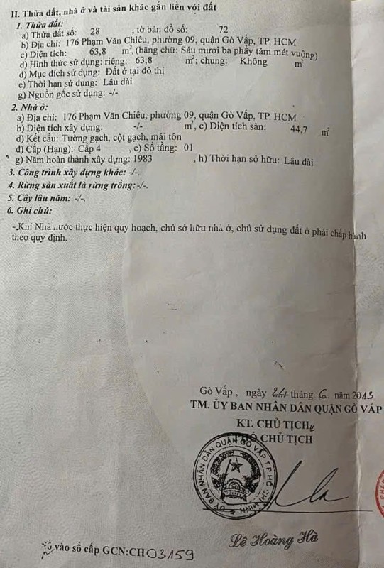 Nhà MT 176 Phạm Văn Chiêu, Phường 9, Gò Vấp, MT 20m, 5x13m, Cn 63,8 m2, Cấp 4 lửng, 2PN, 2WC, 9,5 tỷ TL