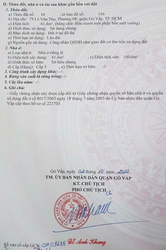 Khu vực: Lê Văn Thọ, Phường 8, Quận Gò Vấp, TP Hồ Chí Minh