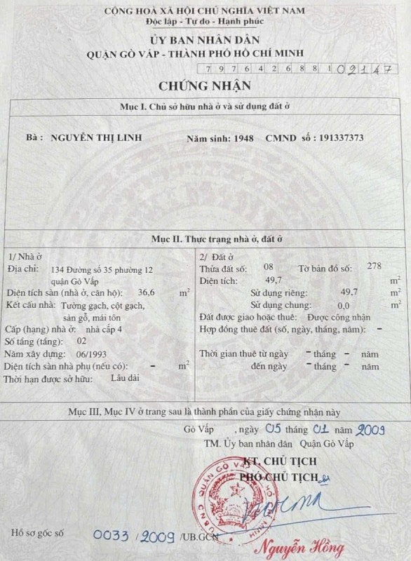 Nhà 2 MT 35 Huỳnh Văn Nghệ, Phường 12, Gò Vấp, MT 6m, 4,1x16m, Cn 56,1 m2, Cấp 4 lửng, 5,8 tỷ TL